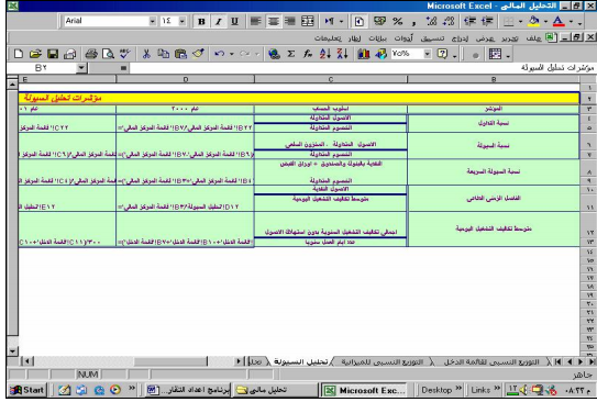 السابعة لحساب مؤشرات السيولة، وتكون صورة هذه الورقة بما تتضمنه من معادلات كما