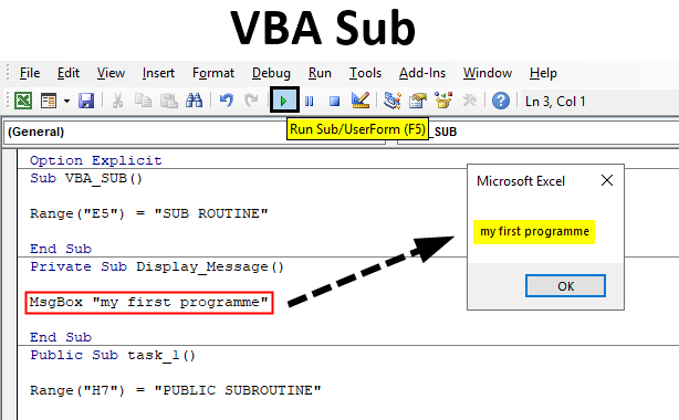 بناء جملة VBA Subroutine في برنامج Microsoft Excel وكيفية استدعاء Sub في لغة البرمجة VBA