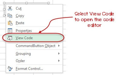 3. اكتب رمز حدث النقر لزر الأمر الذي يستدعي