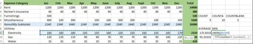 الخلايا. دعنا نستخدم هذه الوظيفة لتحديد الحد الأدنى من فواتير الكهرباء والغاز.