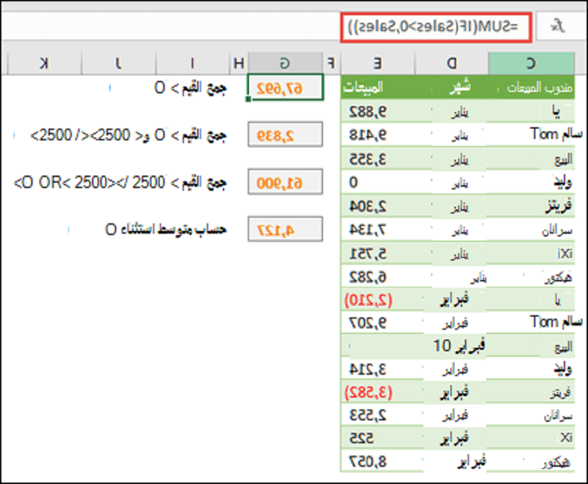 المثال، {4,3,1;TRUE,FALSE,TRUE}، يمكن أن تكون - الأرقام في ثوابت الصفائف