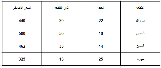 نريد مثلا حساب عدد القطع من السراويل والتنانير التي تم بيعها