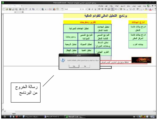 المستخدم بأنه بصدد الخروج من البرنامج، وتُظهر الأشكال التالية هذه الإجراءات: