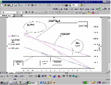 مكان نقطة التعادل، ووسـائل الـشرح والإيـضاح للإشارة إلى مناطق الربح والخسارة،