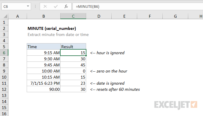 لاستخراج الدقيقة في الخلية، أو تغذية النتيجة في دالة أخرى مثل دالة TIME.