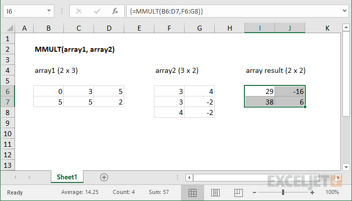 لمصفوفتين. النتيجة من الدالة MMULT هي صفيف يحتوي على نفس