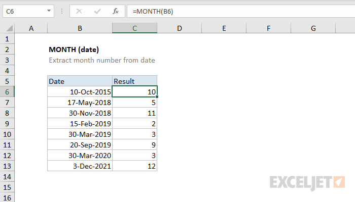 لاستخراج رقم شهر من تاريخ إلى خلية، أو لتغذية رقم شهر إلى دالة أخرى مثل دالة
